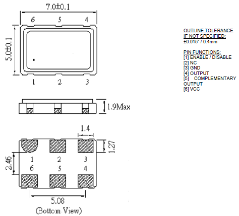 | Size/Dimension尺寸 | 7.00mm x 5.00mm | 最小包裝數MPQ: | 1000 |