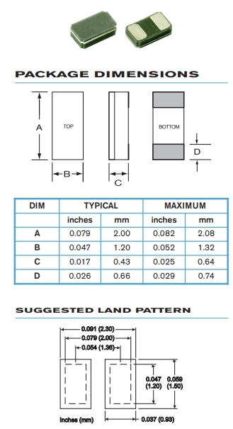 | Type 系列: | KHz Crystal | 腳位 Termination: | 2 pad |