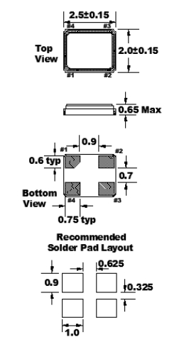 | Frequency Stability頻率穩定度 | ±50ppm | 高度 Package Height: | 0.60mm |