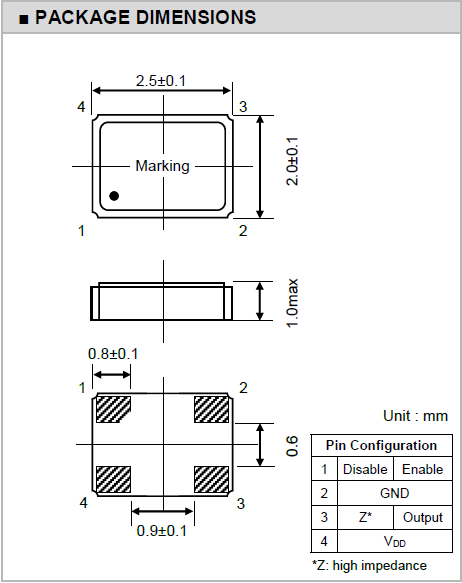 | Type 類(lèi)型 | XO | Package Height高度 | 1.0mm |