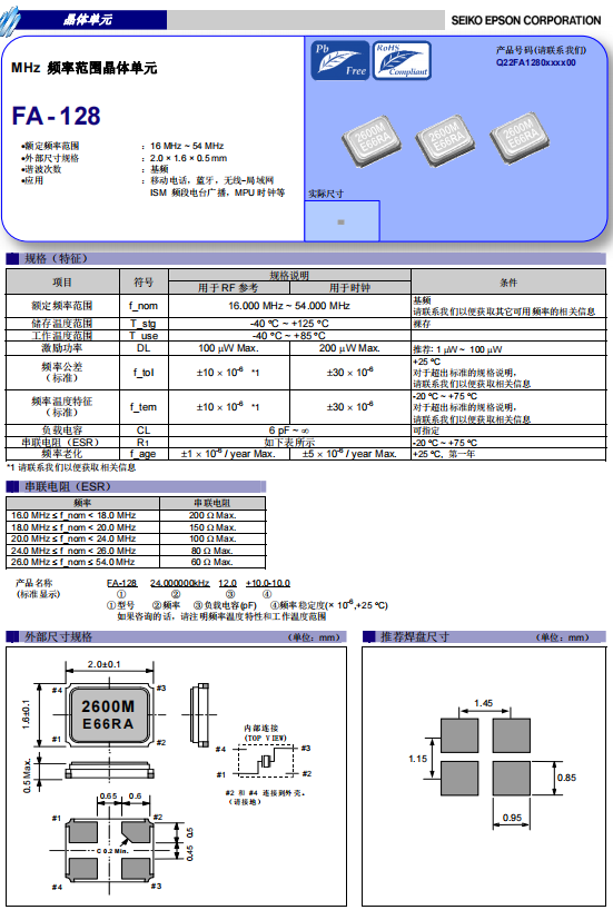 | Q22FA12800020 | 2 x 1.6 x 0.5mm | FA-128 | 26.000000 MHz | 9 pF | -20 to +75 °C |