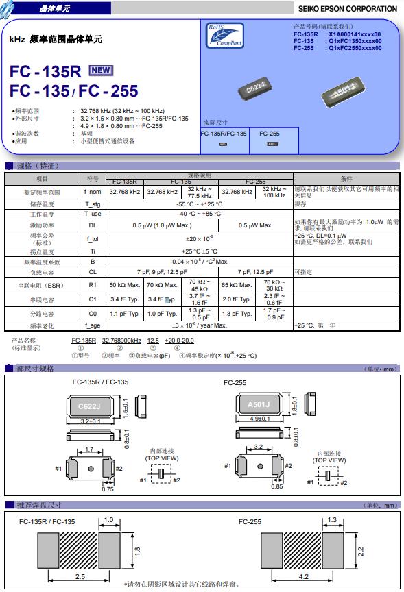 | X1A000141001900 | 3.2 x 1.5 x 0.9 mm | FC-135R | 32.768kHz | 12 pF | -40 to +85 °C |