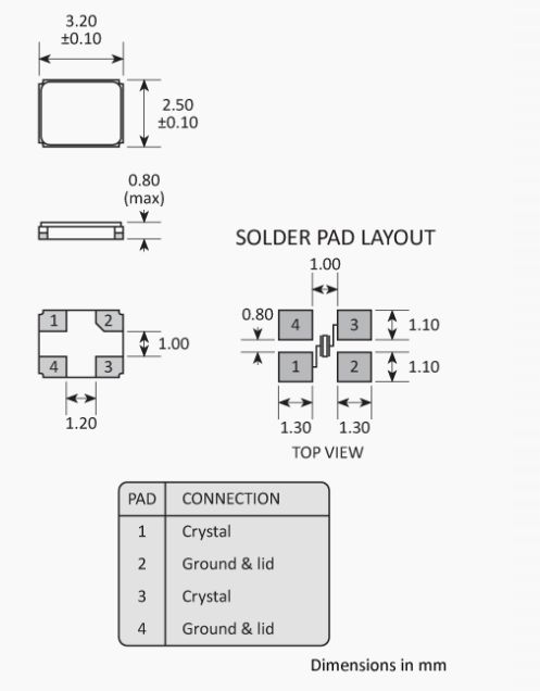 | 尺寸 | 3.2 x 2.5 x 0.8mm |