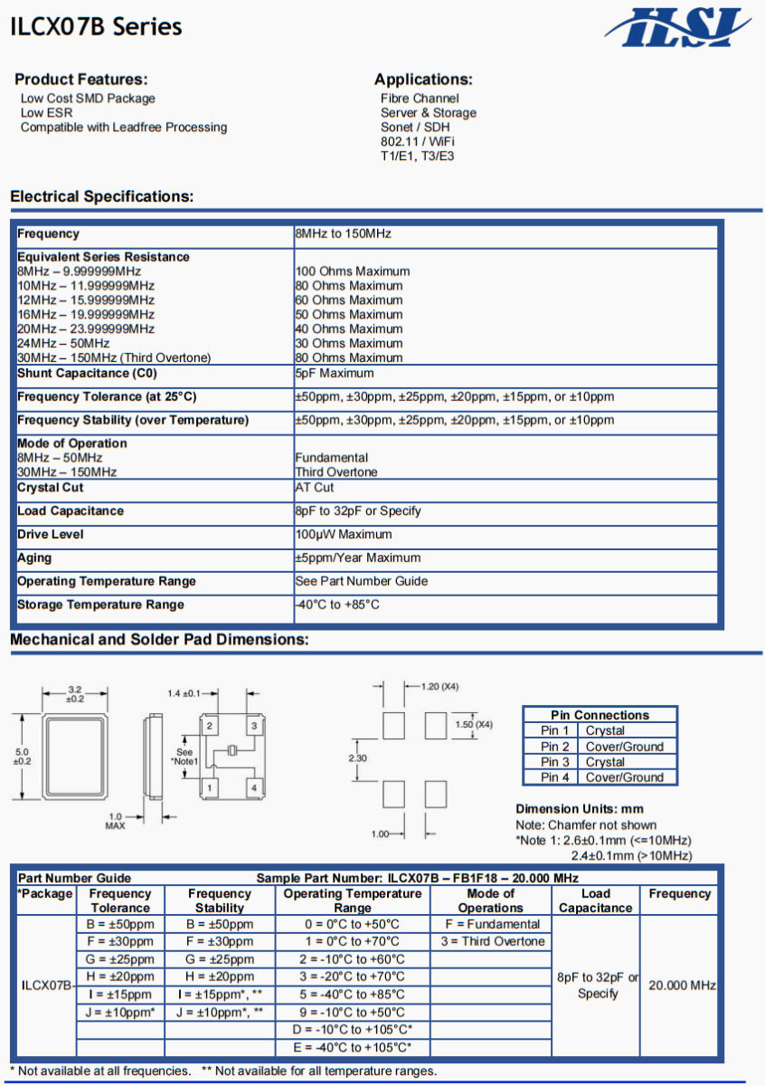 | ILCX20-HH3F8-32.000MHZ | ILSI | ILCX20 | 32 MHz | ±20ppm | ±20ppm | 8pF |
