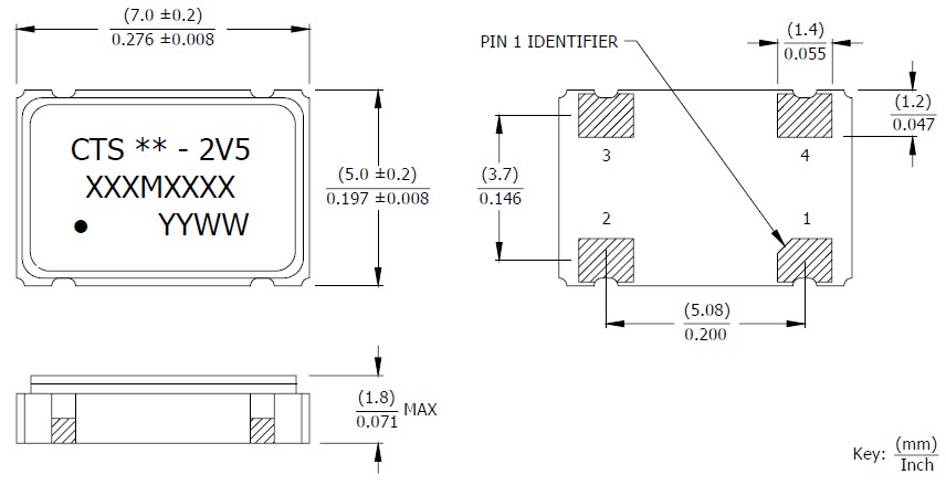 CTS有源晶振CB2V5,石英晶體振蕩器,7050mm貼片晶振