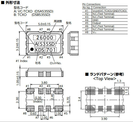 KDS晶振,DSB535SD晶振,5032晶振的不正確安裝會導致故障以及崩潰,因此安裝時,請檢查安裝方向是否正確。