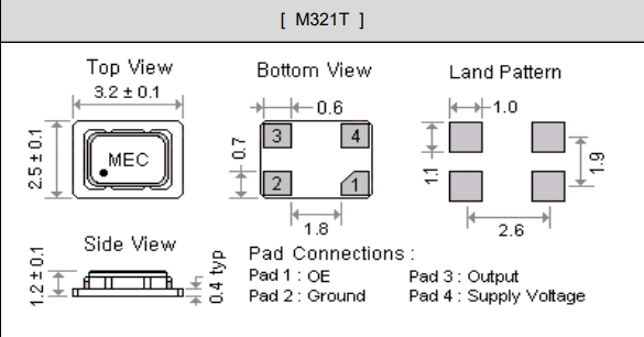 | Frequency 頻率 | 40.000MHz | Termination 腳位 | 4 pads |