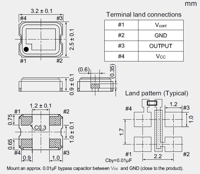 建議將輸出負載安裝在盡可能靠近振蕩器的地方(在20 mm范圍之間)。