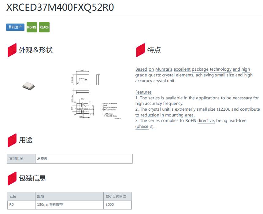 XRCED37M400FXQ52R0石英晶體諧振器,村田日本晶振MCR1210,XRCED37M400FXQ52R0石英晶體諧振器,村田日本晶振,MCR1210超小型晶振,無源晶振,貼片石英晶振,1210mm晶振,環(huán)保晶振,智能手機晶振,平板電腦晶振,無線路由器晶振,數(shù)碼相機晶振.