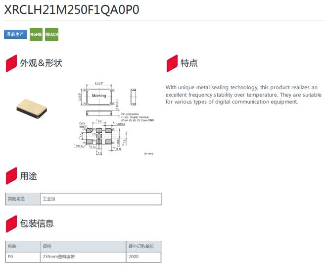 XRCLH21M250F1QA0P0 21.25MHz -30~85℃ 5032mm 8pf ,XRCLH21M250F1QA0P0,頻率21.25MHz,工作溫度-30~85℃,尺寸5032mm,負(fù)載8pf,高精度晶振,數(shù)字通信設(shè)備晶振,測量儀器晶振,微處理器晶振,數(shù)碼音影系統(tǒng)晶振.