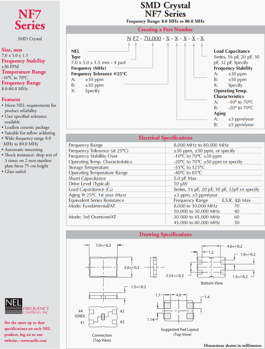 NEL晶振,NF7-48.000-ABBA20PF四腳晶振,6G路由器晶振,NEL晶振公司,歐美晶振,符合NEL產(chǎn)品可靠性要求,用戶指定公差,無鉛陶瓷封裝,適用于回流焊,寬頻率范圍8.0 MHz至80.0 MHz,自動(dòng)安裝,抗沖擊:在2mm不銹鋼板上從75厘米高度跌落試驗(yàn)3次,玻璃密封,7050晶振,石英晶振,貼片晶振,無源晶振,環(huán)保無鉛晶振,符合國際標(biāo)準(zhǔn)