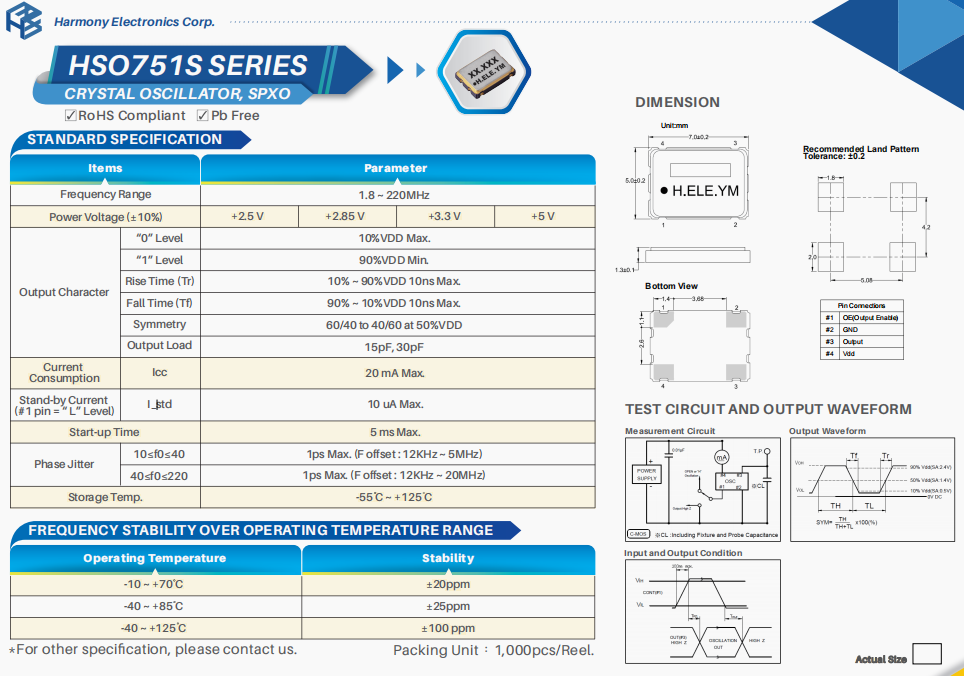 | X3S020000BF1HA‐V | 加高晶振 | HSX321S | 20 MHz | ±30ppm | 15pF | -40°C ~ 85°C |