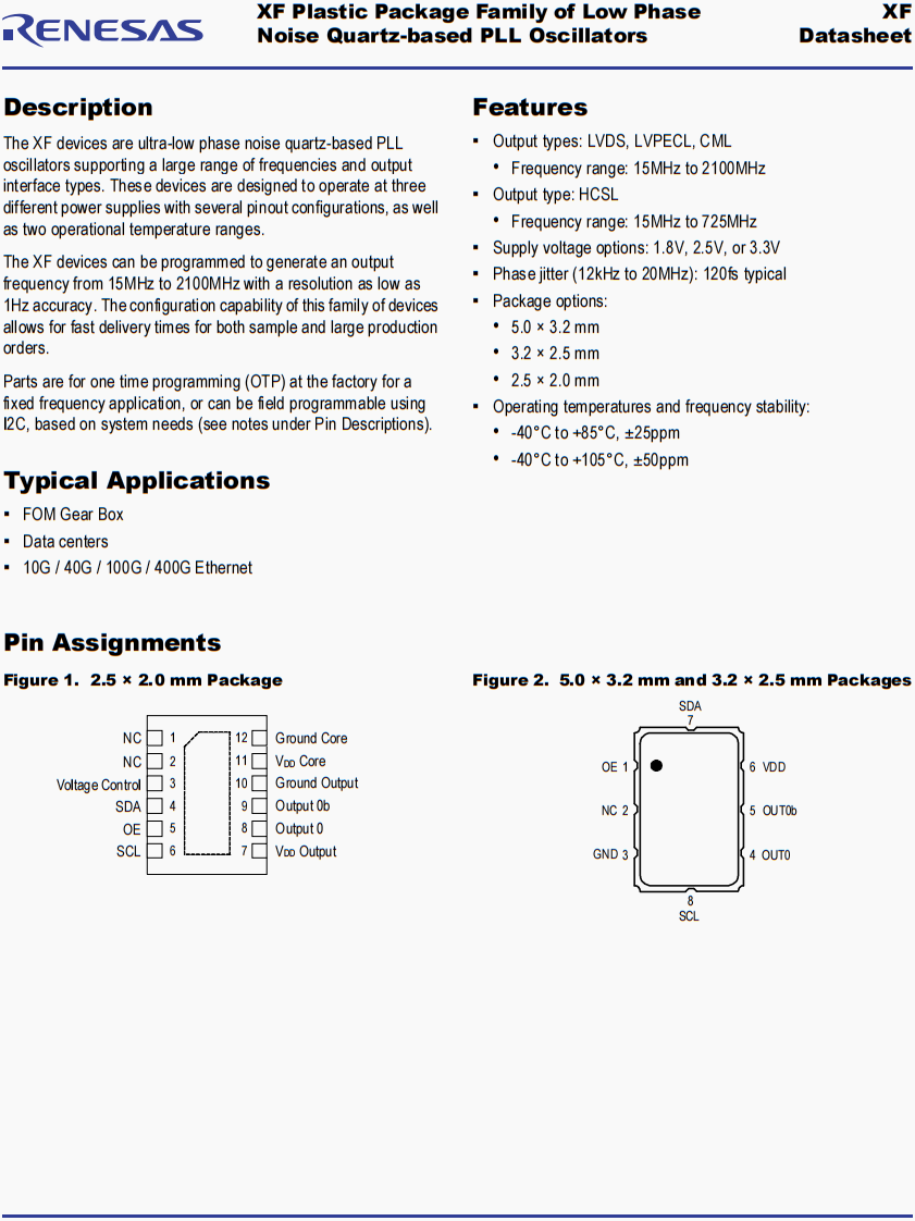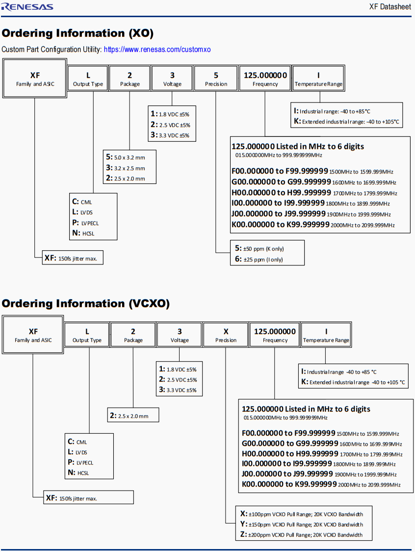 | XFL316050.000000I | Renesas晶振 | XF | 50 MHz | LVDS | 1.8V | ±25ppm |