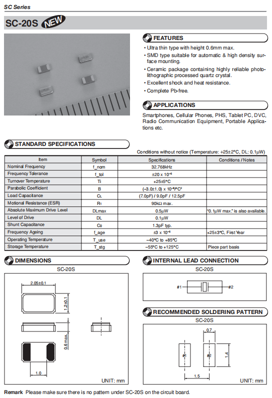 | Q-SC20S0322070CAAF | 精工晶振 | SC-20S | 32.768kHz | ±20ppm | ±20ppm | 7pF |