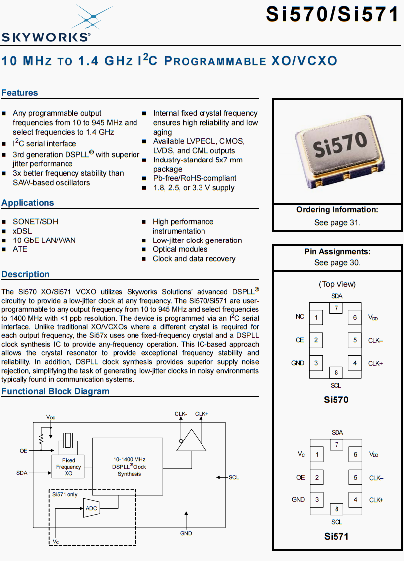 | 570ABB000419DG | Skyworks晶振 | Si570 | XO | 155.52 MHz | LVPECL | 3.3V |