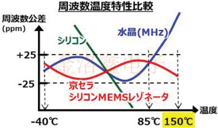 1.實現優異的頻率溫度特性 隨著溫度升高,硅具有頻率溫度特性,其中直線向右下降,而石英具有三次曲線.京瓷的硅MEMS諧振器采用獨特的摻雜技術,使晶振可在-40~150℃的寬溫度范圍內實現+/-25ppm的窄公差.