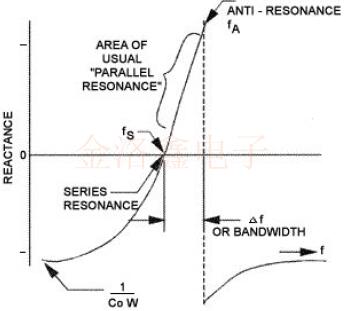 用于確定設備的相對質量或運行效率的度量.在晶體諧振器中,它是運動電感或電容的電抗除以運動電阻(請參閱下面的有用公式).石英晶體諧振器可獲得的最大短期穩定性取決于”Q”值.在圖1中,串聯和并聯頻率之間的間隔稱為帶寬.隨著帶寬變小,”Q”的值增加,電抗斜率變陡.外部電路組件電抗的變化對高”Q”晶體的影響較小(“可拉性”較小),因此,短期穩定性更高. 運動電容(C1):