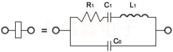 等效電路(如圖A所示)描繪了以自然諧振頻率工作的Quartz Crystal單元的電活動.分流電容(Co)表示晶體電極的電容加上支架和引線的電容.R1,C1和L1組成了晶體的”運動臂”,被稱為運動參數.運動電感(L1)代表晶體單元的振動質量.運動電容(C1)代表石英的彈性,而電阻(R1)代表石英內部發生的體積損失.