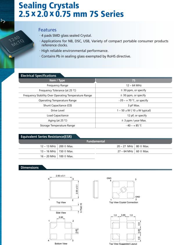 7S-24.000MAHE-T|-40~85°C|24MHz|2520mm無源晶振 特點