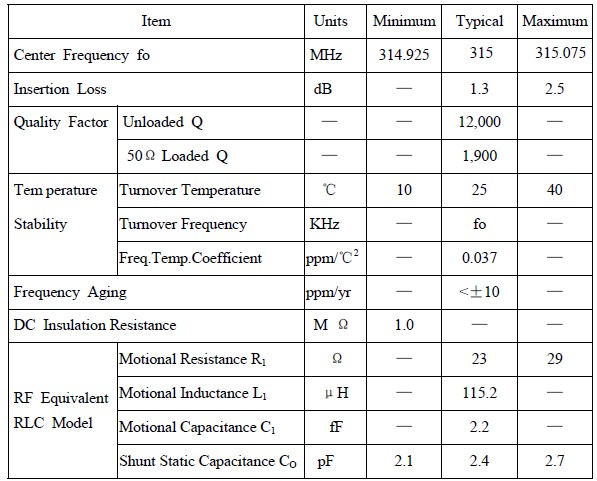 - 頻率:314.925MHz~315.075MHz