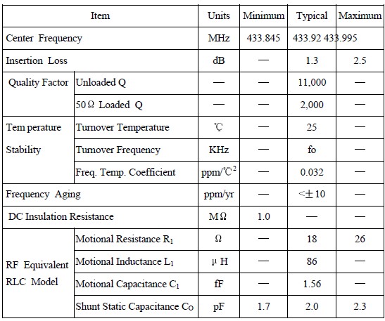 聲表諧振器,遙控專用F11四腳,R433.92M濾波器