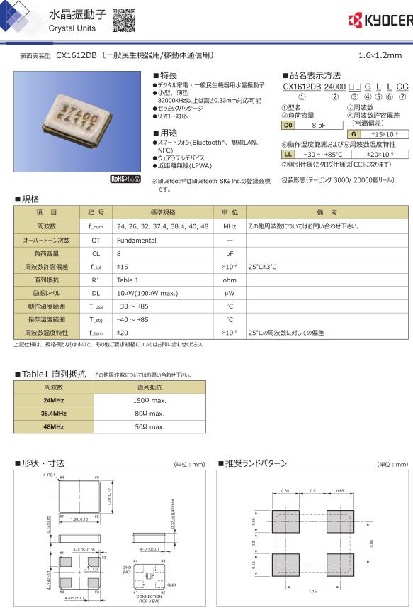編碼CX1612DB24000D0GLLCC專供應于民生機器應用的京瓷無源晶體特?