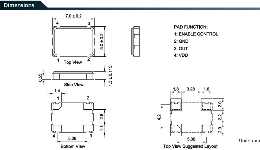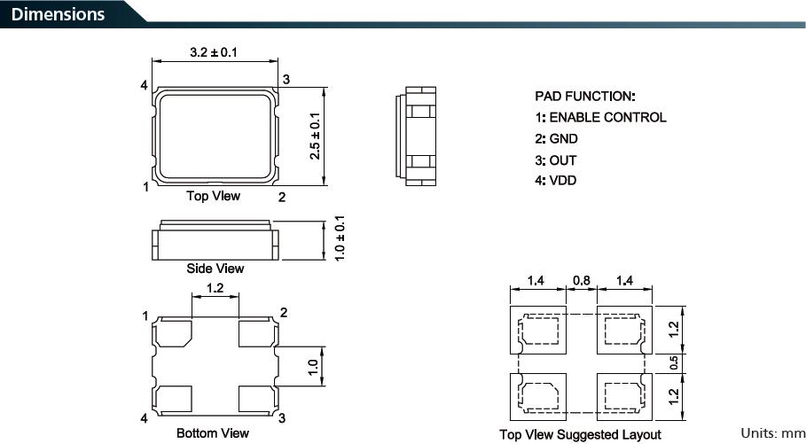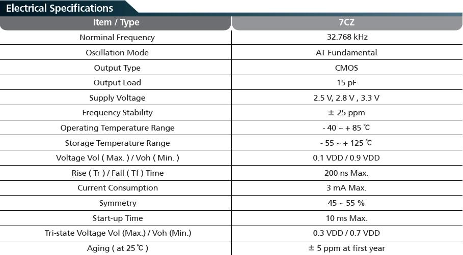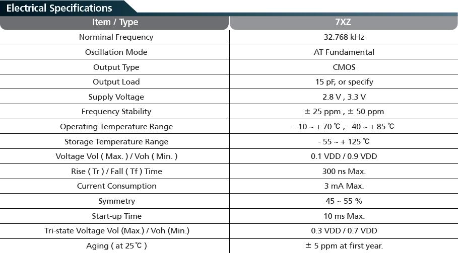 7XZ晶振是最為常用的3225尺寸封裝貼片石英晶振,參數如下: