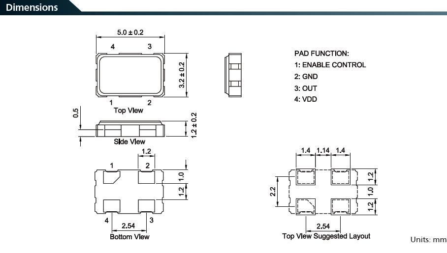 7CZ晶振5032封裝四腳金屬表面貼片型普通有源石英晶振,參數如下: