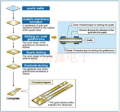 光刻技術的確令人贊嘆(圖3).工程師們在開始基本實驗后就看到了驚人的潛力,這讓他們感到驚訝.石英設備工程師Mutsumi Negita表示:"即使在基礎實驗階段,我們也可以看到我們的過程精度至少比機械方法好10倍."看起來光刻技術將是其處理方法中非常有價值的后續技術. 圖3:當時的光刻技術的工藝流程,攝影曝光技術用于從石英晶片中提取所需形狀的石英碎片,并形成微觀圖案的電極.