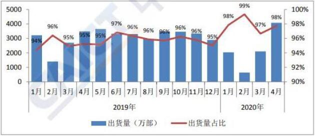 4月份國產智能機銷量增長14.2%結束連續10個月下降的趨勢