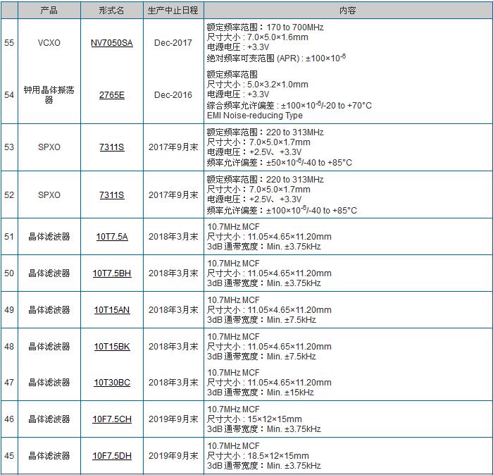 許多人認(rèn)為購買晶振時(shí)最麻煩的莫過于沒有現(xiàn)貨了,這個(gè)問題同時(shí)也在困擾著我們這些晶振銷售員,畢竟多買出去一點(diǎn),我們就多一些收入。進(jìn)口晶振交期周期長是常有的事,不過這些交期長些都算好的了,部分石英晶振因?yàn)樵谑忻嫔险也粴ぷ雍途荒芡V股a(chǎn)。例如之前日本的NDK晶振公司就公布了55款停產(chǎn)晶振型號,同時(shí)還有一些可替代原產(chǎn)品的石英晶體料號。