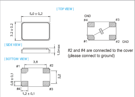 XVCCECNANF-25.000000~臺灣Taitien晶振~5032mm四腳貼片晶振 尺寸圖