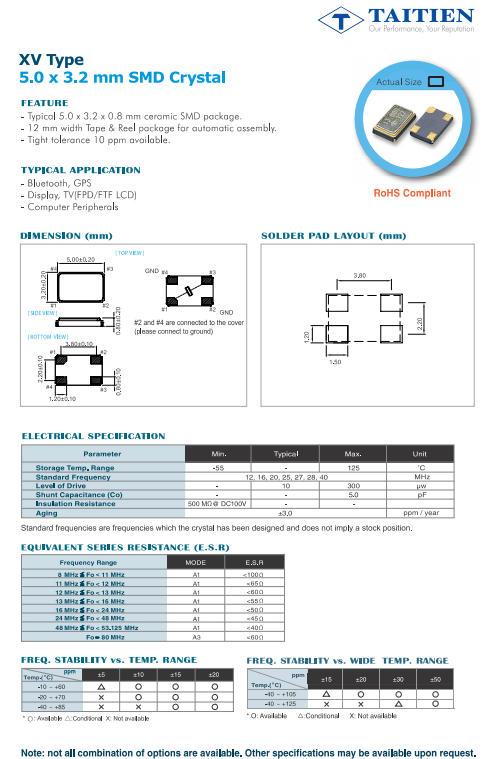 XVCCECNANF-25.000000~臺灣Taitien晶振~5032mm四腳貼片晶振,參數圖