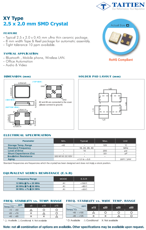 | XYAEEJNANF-26.000000 | Taitien晶振 | XY | 26MHz | -40°C ~ 105°C | 0.100" L x 0.081" W (2.55mm x 2.05mm) |
