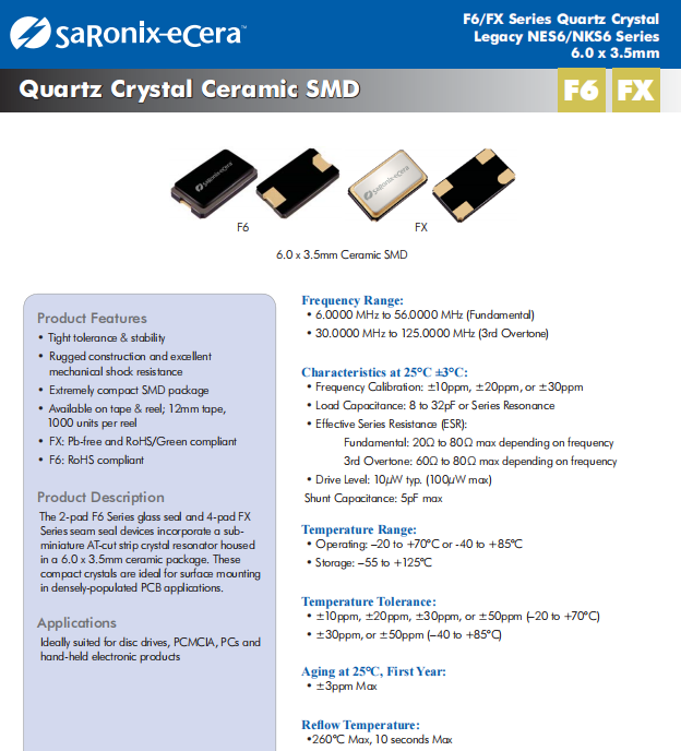 •6.0 x 3.5mm陶瓷貼片 非常適合磁盤驅動器,PCMCIA, pc和手持電子產品